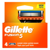 تیغ یدک ژیلت Fusion 5 ( شامل 4 عدد تیغ یدک ) ، ساخت آلمان ، از پر فروش ترین تولیدات کمپانی ژیلت است که برای تمامی دسته های سری ProGlide / ProShield / Fusion ؛ سازگار و قابل استفاده است . هر کدام از این تیغ ها دارای 5 لبه نزدیک به هم از جنس استیل ضد زنگ بسیار با کیفیت هستند که عملکرد بالایی دارند . در قسمت بالایی هر تیغ نوار صابونی آبی رنگی وجود دارد که پس از تماس با آب ، ماده ای روان کننده را روی پوست پخش می کند ؛ این ماده حاوی آلوئه ورا و ویتامین E بوده و از التهاب پوست جلوگیری می کند و همچنین باعث لغزندگی بهتر تیغ ، روی پوست می شود . قسمت نارنجی رنگ پایین تیغ ها همانند یک گارد محافظ از سطح پوست به خوبی مراقبت می کند و از خراشیدگی و بریدگی جلوگیری می کند . در قسمت پشت هر کدام از تیغ ها یک لبه ی تیغ وجود دارد که برای خط انداختن ، مورد استفاده قرار می گیرد . تیغ های یدک ژیلت فیوژن 5 انعطافپذیر و متحرک است و می تواند تمام انحنا و زاویه های صورت را به خوبی اصلاح کند