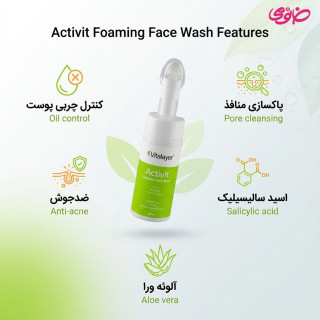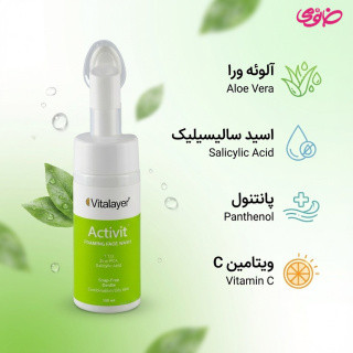 فوم شستشوی صورت ویتالیر مدل Activit، پاک کننده سازگار با ساختار طبیعی پوست برای پوست های چرب و مختلط است که به آرامی چربی اضافه و آلودگی ها را تمیز می کند و چهره را پاک و شاداب نگه می دارد. پمپ به همراه برس سیلیکونی نرم، شست و شوی دقیق تر و حس ماساژ ملایم را ایجاد می کند و به حس شادابی کمک می کند. ترکیب ویتامین C، آلوئه ورا و دکسپانتنول از پوست در برابر عوامل محیطی محافظت می کند و رطوبت طبیعی آن را حفظ می کند تا بعد از شست و شو احساس کشیدگی نداشته باشید.